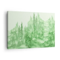 Canvastavla - Bild på duk - Grön skog i akvarellstil på en ljus bakgrund - 70x50cm - Suddig i grön dimma - Modern väggdekoration för vardagsrum och sovrum ARTTOR