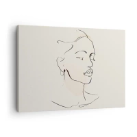 Canvastavla - Bild på duk - En minimalistisk skiss av ett ansikte mot en ljus bakgrund - 70x50cm - Drömmens kontur - Modern väggdekoration för vardagsrum och sovrum ARTTOR