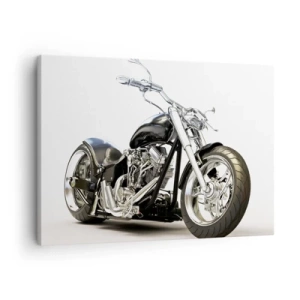 Canvastavla - Bild på duk - Snygg svart motorcykel på en vit bakgrund - 70x50cm - Kraft med karaktär - Modern väggdekoration för vardagsrum och sovrum ARTTOR