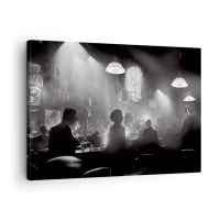Canvastavla - Bild på duk - Svartvit jazznattklubbsscen - 70x50cm - I en jazzig stämning - Modern väggdekoration för vardagsrum och sovrum ARTTOR