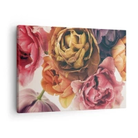 Canvastavla - Bild på duk - En närbild av en bukett rosa pioner - 70x50cm - Hopklämda och doftande - Modern väggdekoration för vardagsrum och sovrum ARTTOR