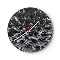 Väggklocka - Klocka på glas - Abstrakt svartvit 3D-komposition i form av en explosion - 30x30cm - Det kan inte bli vassare än så här - Modern väggdekoration för vardagsrum, kök och sovrum ARTTOR