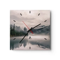 Väggklocka - Klocka på glas - I förundran, i dimman - 30x30 cm