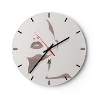 Väggklocka - Klocka på glas - Ett minimalistiskt porträtt av en kvinna i beige nyanser. - 30x30cm - Skapad av ljus och skugga - Modern väggdekoration för vardagsrum, kök och sovrum ARTTOR