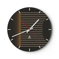 Väggklocka - Klocka på glas - En abstrakt komposition med linjer mot svart bakgrund som skapar en känsla av djup. - 30x30cm - Utforska mörkret - Modern väggdekoration för vardagsrum, kök och sovrum ARTTOR