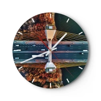 Väggklocka - Klocka på glas - Flygfoto över en repbro över en flod i höstlandskap - 30x30cm - Bortom vatten, bortom skog - Modern väggdekoration för vardagsrum, kök och sovrum ARTTOR