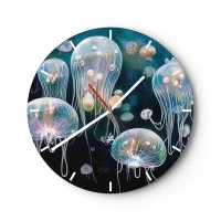 Väggklocka - Klocka på glas - Pastellfärgade maneter som flyter i djupet - 30x30cm - Undervattenbal - Modern väggdekoration för vardagsrum, kök och sovrum ARTTOR