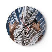 Väggklocka - Klocka på glas - Händer dekorerade med ringar bakom vita palmblad - 30x30cm - Schamanens flickvän? - Modern väggdekoration för vardagsrum, kök och sovrum ARTTOR