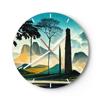 Väggklocka - Klocka på glas - Träd och klippformationer mot en bergsbakgrund på morgonen - 30x30cm - Fortfarande högre och högre - Modern väggdekoration för vardagsrum, kök och sovrum ARTTOR