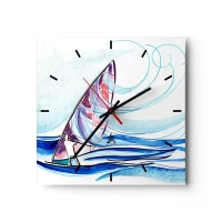 Väggklocka - Klocka på glas - Med vinden i vågornas rytm - 30x30 cm