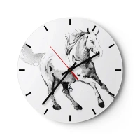 Väggklocka - Klocka på glas - Skiss av en galopperande häst på vit bakgrund - 30x30cm - Obändig själ - Modern väggdekoration för vardagsrum, kök och sovrum ARTTOR