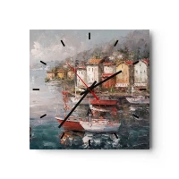 Väggklocka - Klocka på glas - Romantisk hamn - 30x30 cm