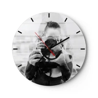 Väggklocka - Klocka på glas - Kvinna med en kamera i en konstnärlig dubbelexponering - 30x30cm - Skapare och material - Modern väggdekoration för vardagsrum, kök och sovrum ARTTOR