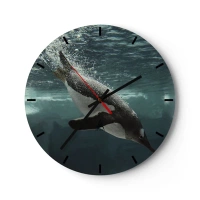 Väggklocka - Klocka på glas - En dynamisk bild av en pingvin som simmar under vattnet - 30x30cm - Välkommen till min värld - Modern väggdekoration för vardagsrum, kök och sovrum ARTTOR