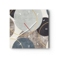 Väggklocka - Klocka på glas - Komposition med guldmotiv - 30x30 cm