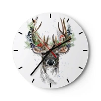 Väggklocka - Klocka på glas - Stiliserad hjort med dekorativa horn - 30x30cm - I högtidskläder - Modern väggdekoration för vardagsrum, kök och sovrum ARTTOR