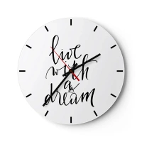 Väggklocka - Klocka på glas - En minimalistisk teckning av en hand och mun mot en vit bakgrund. - 30x30cm - Vad flickorna drömmer om - Modern väggdekoration för vardagsrum, kök och sovrum ARTTOR