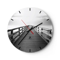 Väggklocka - Klocka på glas - En träbro som leder mot horisonten - 30x30cm - Ut i det oändliga... - Modern väggdekoration för vardagsrum, kök och sovrum ARTTOR