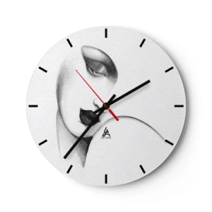 Väggklocka - Klocka på glas - Ett minimalistiskt porträtt av en kvinna i grå nyanser. - 30x30cm - I Łempickas stil - Modern väggdekoration för vardagsrum, kök och sovrum ARTTOR