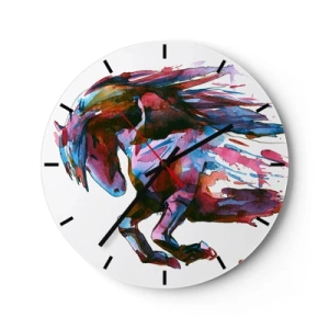 Väggklocka - Klocka på glas - En dynamisk häst i akvarellfärger med en böljande man - 30x30cm - I extas - Modern väggdekoration för vardagsrum, kök och sovrum ARTTOR