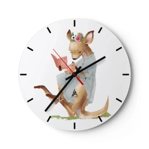 Väggklocka - Klocka på glas - En kängurumamma som läser en bok med sin bebis i knät - 30x30cm - Mamma, läs för mig - Modern väggdekoration för vardagsrum, kök och sovrum ARTTOR