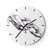 Väggklocka - Klocka på glas - En symbolisk sammansmältning av mänskliga och robotiska händer - 30x30cm - God gest - Modern väggdekoration för vardagsrum, kök och sovrum ARTTOR