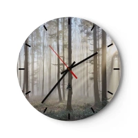 Väggklocka - Klocka på glas - Dimma som lyser genom träden i skogen - 30x30cm - Dimman är också vaken - Modern väggdekoration för vardagsrum, kök och sovrum ARTTOR