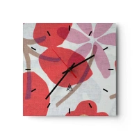 Väggklocka - Klocka på glas - Blomsterkomposition i rosa - 30x30 cm