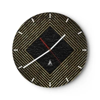 Väggklocka - Klocka på glas - Gyllene linjer som bildar en romb på en svart bakgrund - 30x30cm - Geometri i glamourstil - Modern väggdekoration för vardagsrum, kök och sovrum ARTTOR