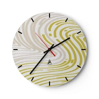 Väggklocka - Klocka på glas - Abstrakta linjer i beige och gult skapar ett virvlande mönster. - 30x30cm - Komposition med en mjuk böjning - Modern väggdekoration för vardagsrum, kök och sovrum ARTTOR