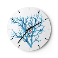 Väggklocka - Klocka på glas - Illustration av blå korall på vit bakgrund - 30x30cm - Marin filigran - Modern väggdekoration för vardagsrum, kök och sovrum ARTTOR