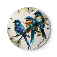 Väggklocka - Klocka på glas - Färgglada fåglar på en gren i akvarell illustrationsstil - 30x30cm - Sur? - Modern väggdekoration för vardagsrum, kök och sovrum ARTTOR