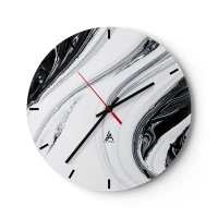 Väggklocka - Klocka på glas - Abstrakta svarta och vita linjer skapar ett flytande, kontrasterande mönster. - 30x30cm - Motsatskombination - Modern väggdekoration för vardagsrum, kök och sovrum ARTTOR