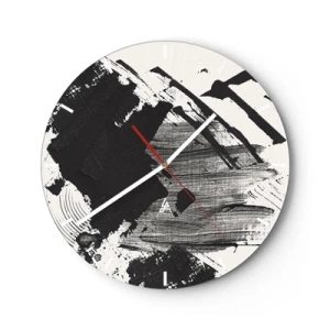 Väggklocka - Klocka på glas - Dynamisk svartvit abstraktion med breda penseldrag - 30x30cm - Abstraktion - uttrycket av svart - Modern väggdekoration för vardagsrum, kök och sovrum ARTTOR
