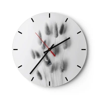 Väggklocka - Klocka på glas - Svartvit komposition med gräs på en ljus bakgrund - 30x30cm - Fluffigt gräs - Modern väggdekoration för vardagsrum, kök och sovrum ARTTOR