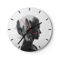 Väggklocka - Klocka på glas - Kvinnaprofil med ett växtmotiv i bakgrunden - 30x30cm - Furuskogens härskarinna - Modern väggdekoration för vardagsrum, kök och sovrum ARTTOR