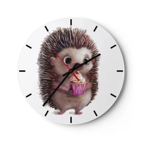 Väggklocka - Klocka på glas - En söt igelkott som håller en färgglad muffin - 30x30cm - Varje dag är helgdag - Modern väggdekoration för vardagsrum, kök och sovrum ARTTOR