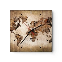 Väggklocka - Klocka på glas - Världsupptäckt - 30x30 cm