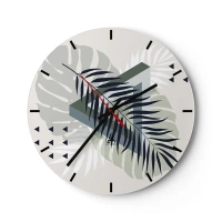 Väggklocka - Klocka på glas - Geometrisk komposition med tropiska löv - 30x30cm - Natur och geometri – två ordningar? - Modern väggdekoration för vardagsrum, kök och sovrum ARTTOR