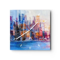 Väggklocka - Klocka på glas - En glädjefylld metropol - 30x30 cm