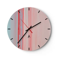 Väggklocka - Klocka på glas - Pastellfärgade vertikala strimmor i nyanser av rosa och blått - 30x30cm - Abstraktion i gryningen - Modern väggdekoration för vardagsrum, kök och sovrum ARTTOR