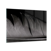 Glastavla - Bild på glas - En svartvit närbild av en fjäder visad mot ett kontrasterande ljus. - 70x50cm - Fjäder - en underbar konstruktion - Modern väggdekoration för vardagsrum och sovrum ARTTOR