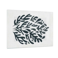 Glastavla - Bild på glas - Svart organisk form på vit bakgrund - 70x50cm - Naturens former - Modern väggdekoration för vardagsrum och sovrum ARTTOR