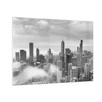 Glastavla - Bild på glas - Stadspanorama med skyskrapor i svartvitt - 70x50cm - Amerikanskt landskap - Modern väggdekoration för vardagsrum och sovrum ARTTOR