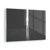Glastavla - Bild på glas - Silhuetten av en man som öppnar en dörr mot ett starkt ljus - 70x50cm - Ett steg mot den ljusa framtiden - Modern väggdekoration för vardagsrum och sovrum ARTTOR