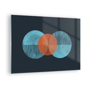 Glastavla - Bild på glas - Färgade cirklar med vertikala linjer på en mörk bakgrund - 70x50cm - Symmetrisk komposition - Modern väggdekoration för vardagsrum och sovrum ARTTOR