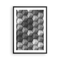 Affisch i svart ram - Svartvit komposition av 3D geometriska kuber - 50x70cm - Kubistiskt pussel - Modern väggdekoration för vardagsrum och sovrum ARTTOR