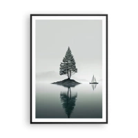 Affisch i svart ram - Ett ensamt träd på en ö med en reflektion i vattnet - 50x70cm - En dröm - Modern väggdekoration för vardagsrum och sovrum ARTTOR