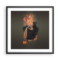 Affisch i svart ram - Kvinna - blomma - 50x50 cm