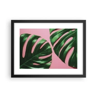 Affisch i svart ram - Tropiken i rosa och blått - 40x30 cm